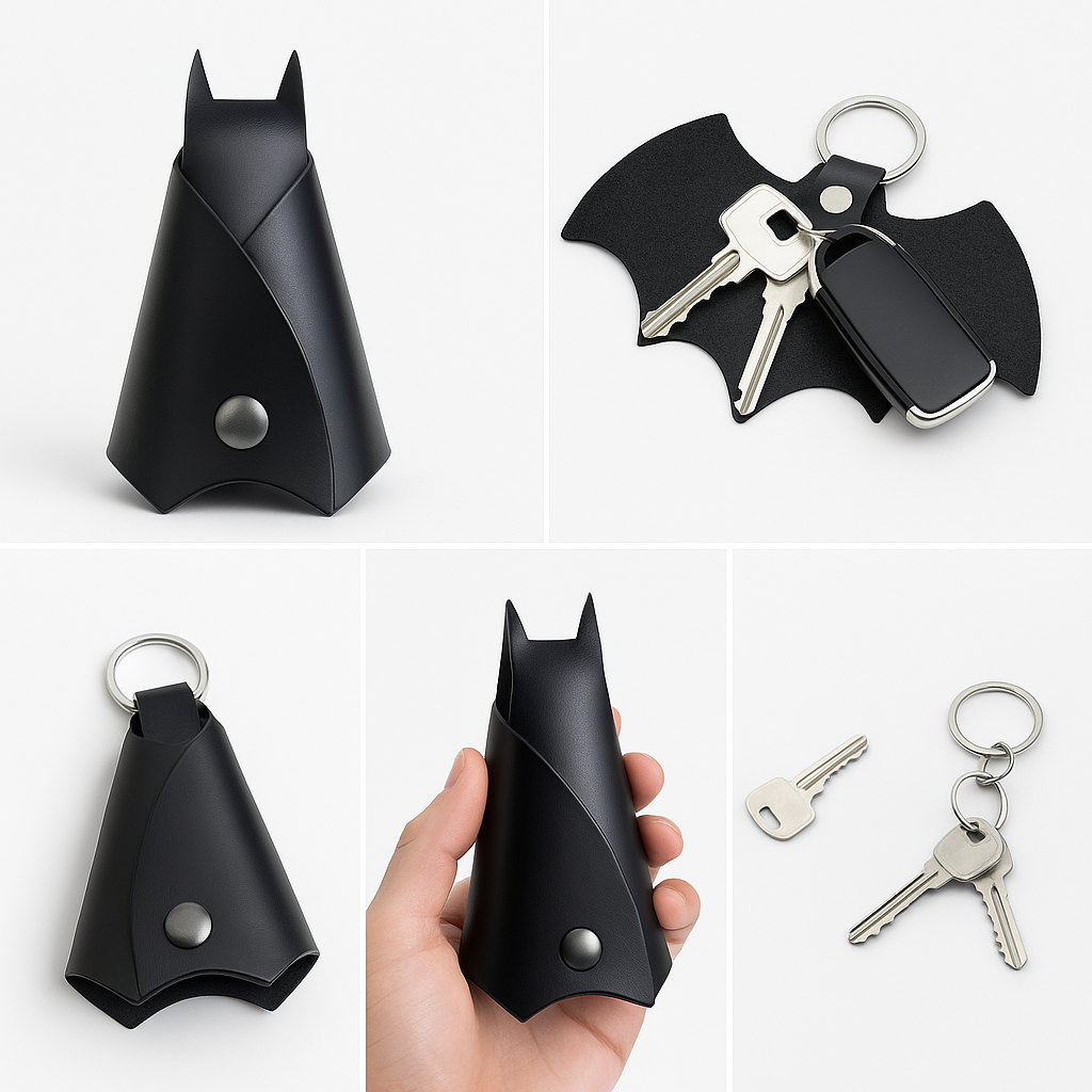 Da un toque de estilo a tu día a día con este organizador de llaves con forma de murciélago. Diseñado en cuero sintético de alta calidad, mantiene tus llaves ordenadas, protegidas y sin ruidos dentro del bolsillo o del bolso.